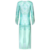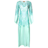 Long silk kaftan emerald heart print