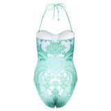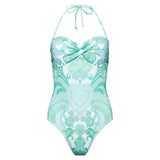 Bandeau one-piece swimsuit emerald heart print