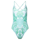 If you are looking for a swimsuit enhancing your femininity, this one has been specially designed for you with its plunging neckline. The fine straps crossed and knotted on the back create a beautiful delicacy. Slip on a matching Kaftan for post beach lounging.