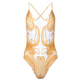 If you are looking for a swimsuit enhancing your femininity, this one has been specially designed for you with its plunging neckline. The fine straps crossed and knotted on the back create a beautiful delicacy. Slip on a matching Kaftan for post beach lounging.