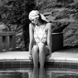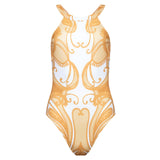 Olympic one-piece swimsuit gold paisley print